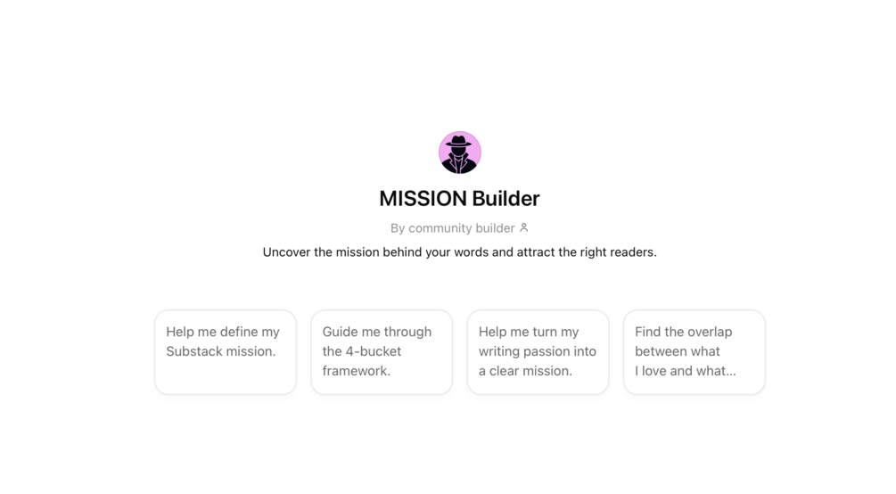 Introducing MISSION Builder GPT - your personal AI clarity coach built for Substack writers and solopreneurs.