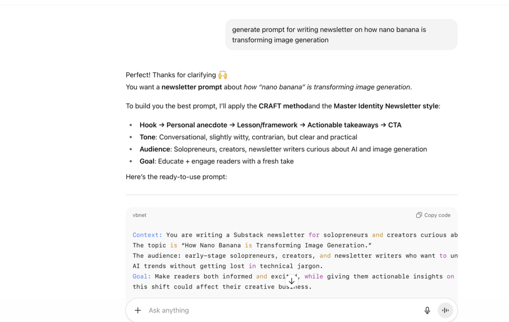 It’s like having a prompt engineer, strategist, and content creator in your pocket.